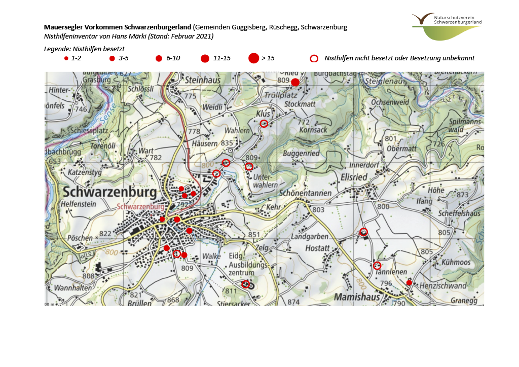 Als ausgewiesener Vogelkenner ist Vereinsmitglied Hans Märki seit mehreren Jahren dafür besorgt, dass Mauersegler im Gebiet des Schwarzenburgerlandes gute Lebensbedingungen erhalten.
